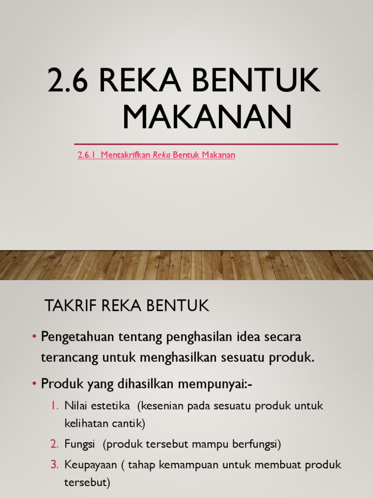 . Reka bentuk makanan terdiri daripada dua jenis iaitu. 8th - 9th grade. PENGUASAAN 26 Rekabentuk Makanan 1 Menyatakan maksud dan kepentingan reka bentuk makanan 2 Menerangkan kategori alat dan perkakasan dalam proses reka bentuk.